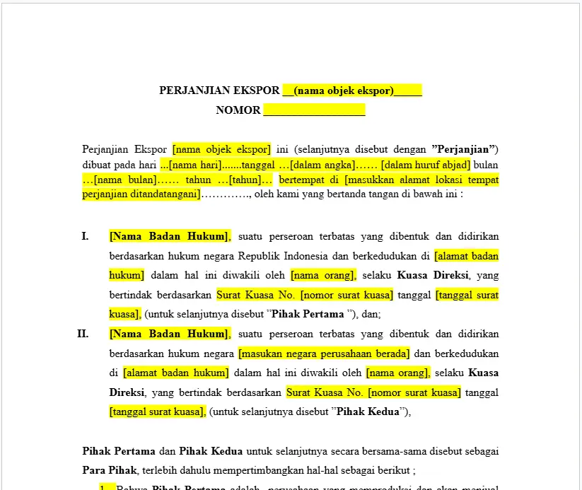 Perjanjian Ekspor ini dibuat untuk mengatur hak dan kewajiban kedua belah pihak dalam kegiatan ekspor, memberikan kepastian hukum, melindungi kepentingan masing-masing, dan memastikan pelaksanaan kesepakatan sesuai hukum yang berlaku di kedua yurisdiksi dan aturan perdagangan internasional.